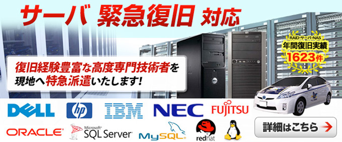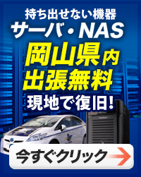 ほとほと困り、岡山県内でデータ復旧が可能な業者を探したが、サーバ機のデータ復旧可能な業者はなかった。