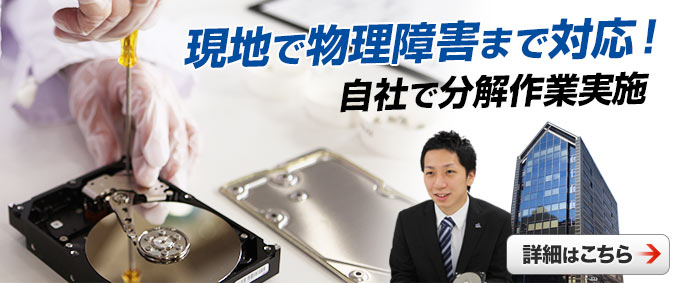 何とかデータを取り出したいと思い、ホームページで検索したところ、データ復旧というサービスを専門で行っている御社にたどり着きました。「明日提出期限のものがあるので今日中に何とかしたい」と相談したところ、出張データ復旧サービスで弊社まで来て頂けることになりました。