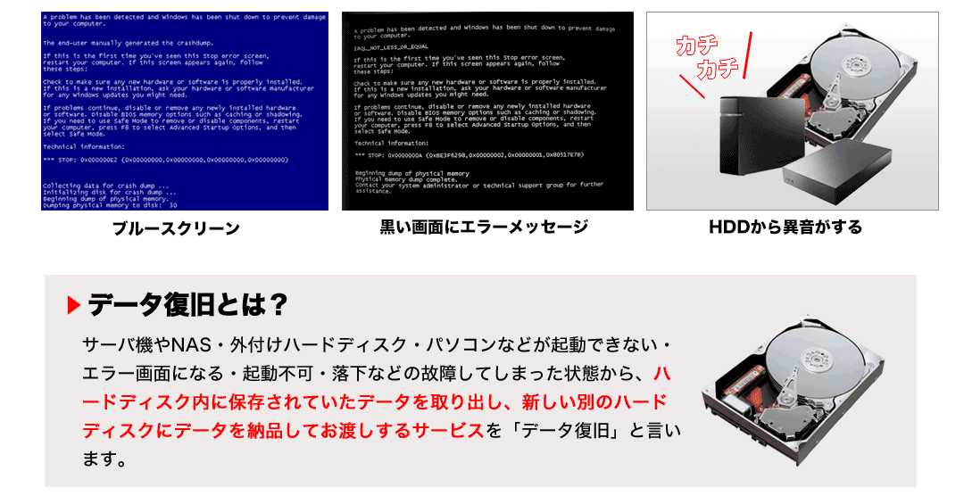ブルースクリーン発生パソコンからデータ復旧