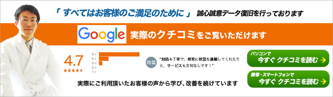 お客様からも、一部のデータは破損していて使い物にならないが、現状で使っているデータは綺麗に戻ったので、非常に助かりましたとのお言葉を頂戴しました。