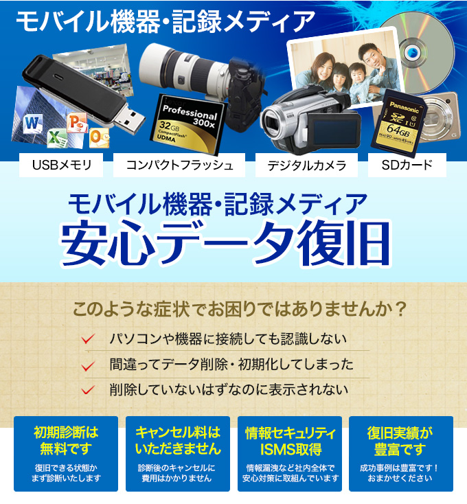 - USBメモリ・SDカード・ビデオカメラデータ復旧