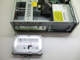 ハードディスクを固定しているネジを取り外して、台座から外します。 |