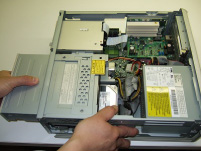 ケーブルを全て外したら、CDドライブを抜き取ります。 |
