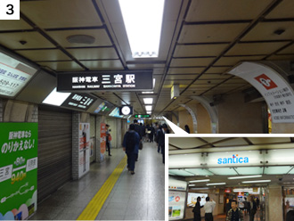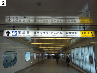 地下鉄三宮駅改札口を出て、地下街を経由し阪神電車方面へ移動します。