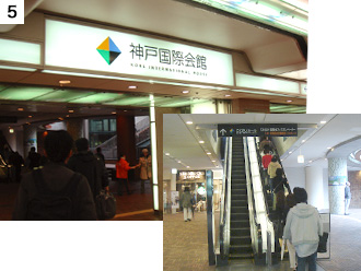 神戸国際会館入口看板が見えます。すぐにあるエスカレーターで2階エレベーターホールへ向かってください。